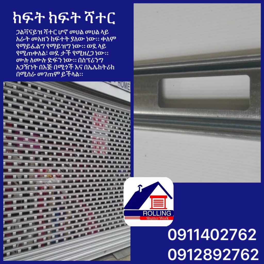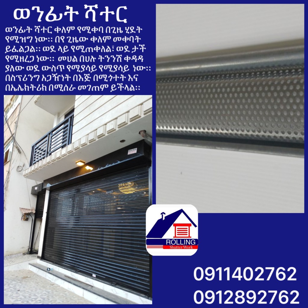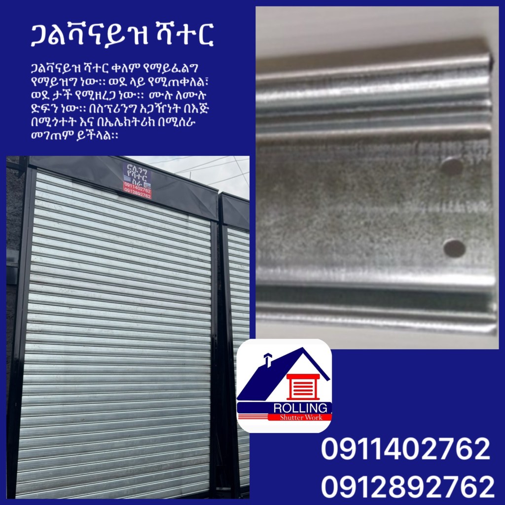 ሮሊንግ የሻተር ስራ Rolling Shutter Works መረብ ሻተር የብረት ሻተር ቨርቲካል ሻተር ሀርሞኒካ ሻተር ጋልቫናይዝድ ሻተር ቬንሺያን ሻተር ዲናሞ ሻተር #Telegram https://t.me/RollingShutterWorks #facebook https://m.facebook.com/RollingShutterWorks/ #Email rollingshutterworks@gmail.com #web https://rolling-shutter-works.tumblr.com #Location http://maps.google.com/?cid=7392948620158686266&hl=en&gl=us Churchill Ave, Addis Ababa, 9.025242,38.752046 #ሮሊንግ #የሻተር #ስራ #Rolling #Shutter #Works #Addis #Ababa #Ethiopia 091 140 2762 091 289 2762 View all posts by ሮሊንግ የሻተር ስራ Rolling Shutter Works